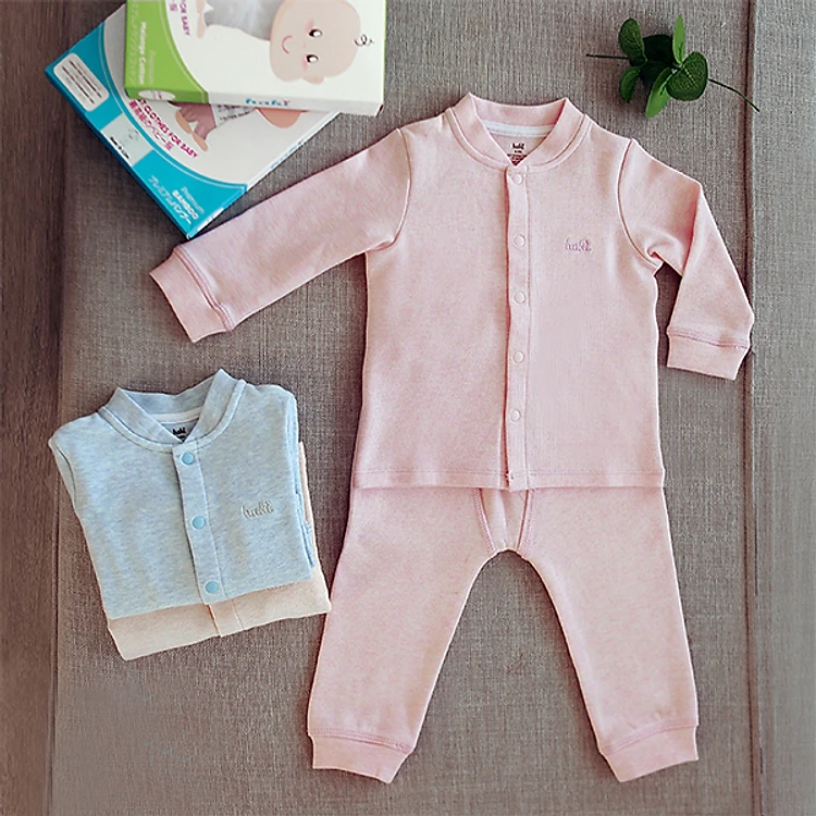 Bộ quần áo dài cài giữa bo cổ Melange Cotton cao cấp cho bé Haki BC004