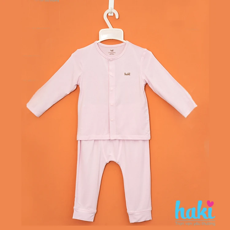 Bộ quần áo sơ sinh cho bé vải sợi tre - bamboo siêu mềm mịn cao cấp - đồ sơ sinh cho bé (2,5kg - 15kg) - bộ dài tay cho bé Haki BB003