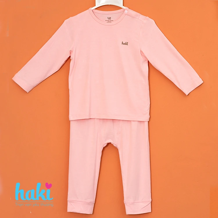Bộ quần áo sơ sinh cho bé vải sợi tre - bamboo siêu mềm mịn cao cấp - đồ sơ sinh cho bé (4kg - 15kg) - bộ dài tay cho bé - thiết kế cài vai Haki BB004