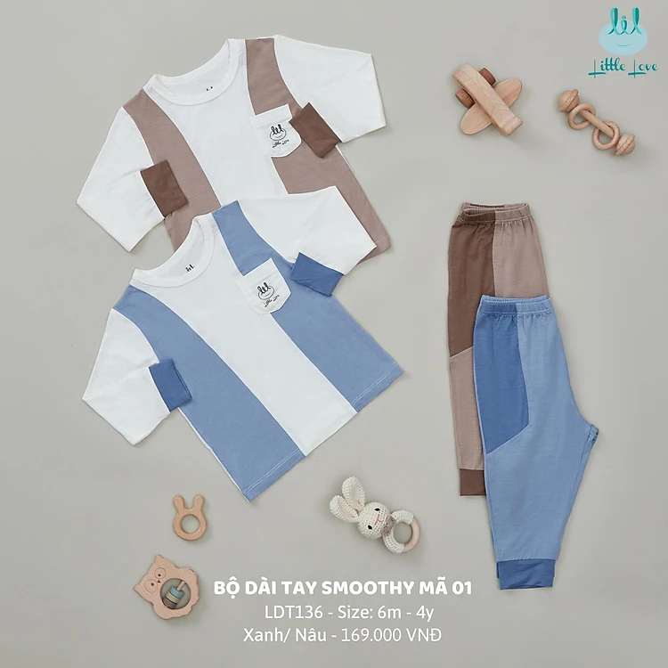 Bộ quần áo dài tay chất smoothy siêu mềm mịn, túi ngực dành cho bé LiL Little Love LDT136