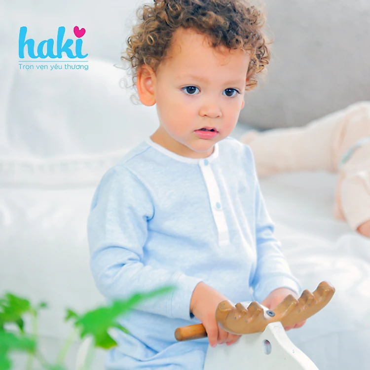 Bộ quần áo dài tay cổ trụ Melange Cotton cao cấp cho bé Haki BC002