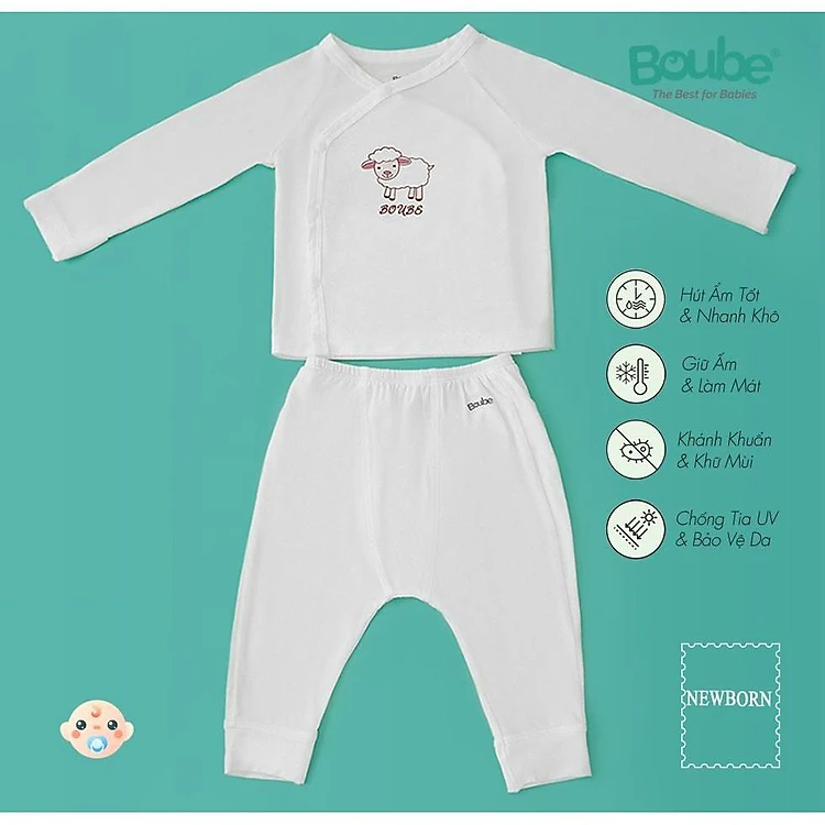 Bộ quần áo dài tay cúc bấm chéo nhiều màu cho em bé sơ sinh Boube, vải sợi tre Bamboo thông minh, thoải mái-Size newborn