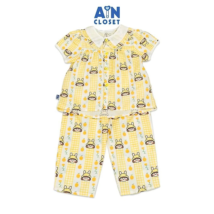 Bộ quần áo Dài tay ngắn bé gái họa tiết Bé Mũ Vàng cotton - AICDBGMYHA1K - AIN Closet