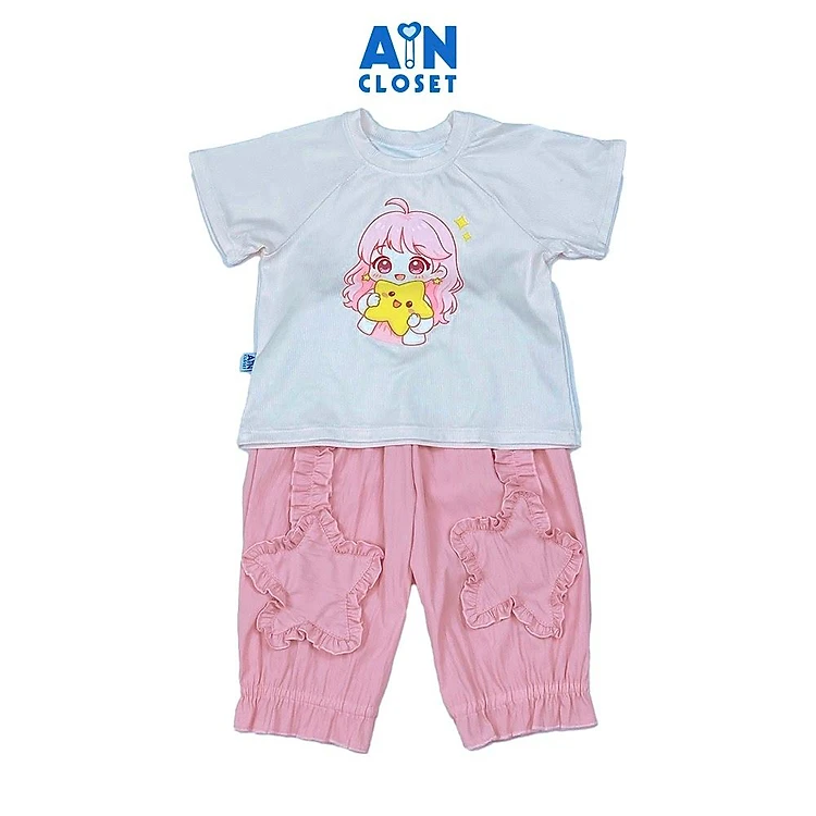 Bộ quần áo Dài tay ngắn bé gái họa tiết Bé Sao Hồng Cotton - AICDBG4D5ZSA - AIN Closet