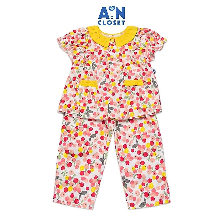 Bộ quần áo dài tay ngắn bé gái họa tiết Cà Chua Cherry cổ vàng cotton - AICDBGSCJMCO - AIN Closet