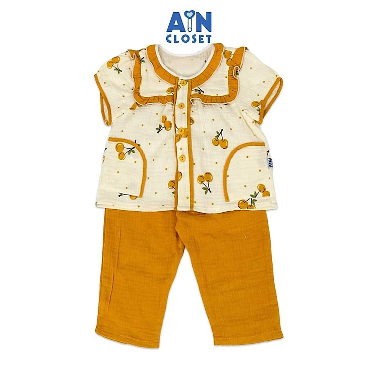 Bộ quần áo Dài tay ngắn bé gái họa tiết Cherry Vàng Nghệ xô muslin - AICDBG7WKFBQ - AIN Closet