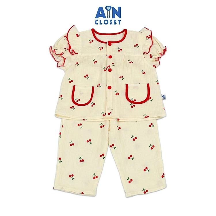 Bộ quần áo Dài tay ngắn bé gái họa tiết Chùm Cherry Nhí Đỏ Xô muslin - AICDBGRNQGUV - AIN Closet