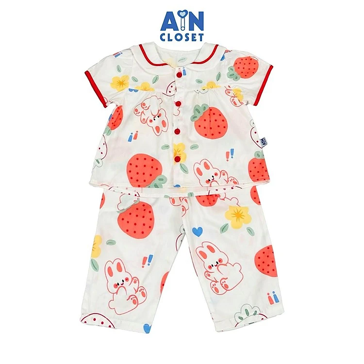 Bộ quần áo Dài tay ngắn bé gái họa tiết Dâu Cam cotton - AICDBGBJCKT5 - AIN Closet