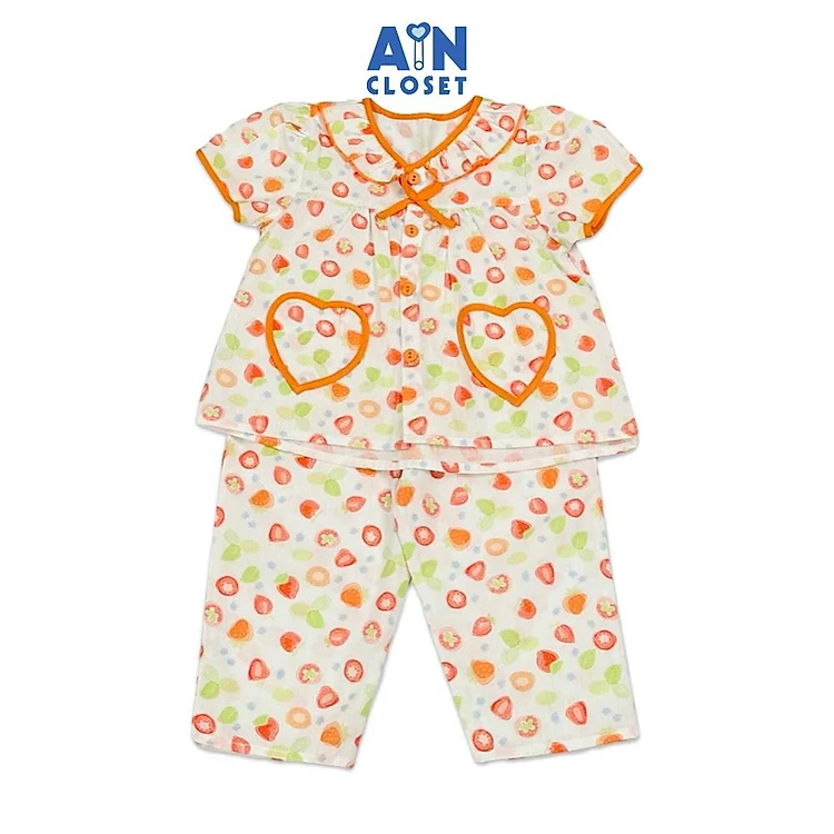 Bộ quần áo Dài tay ngắn bé gái họa tiết Fruit Cam cotton - AICDBGXWA36N - AIN Closet