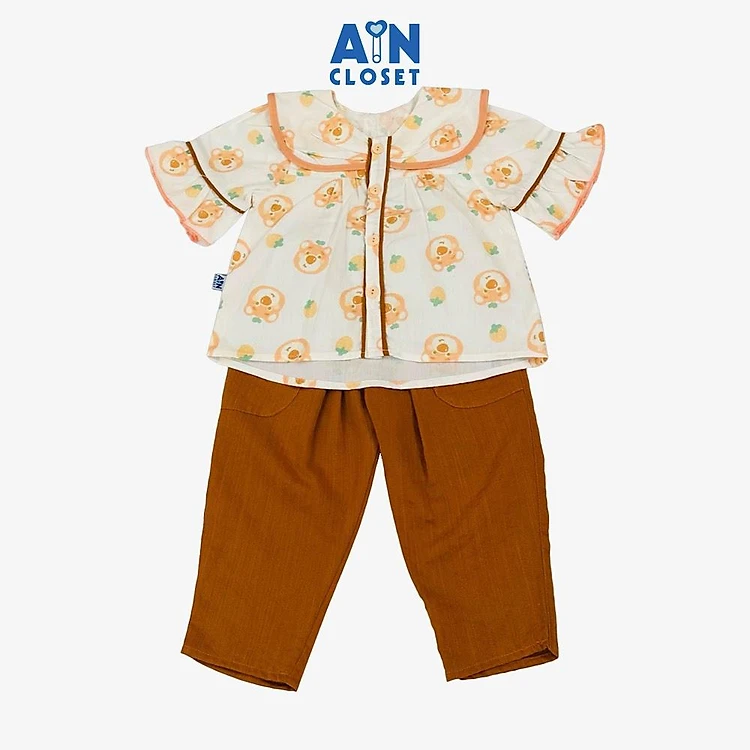 Bộ quần áo Dài tay ngắn bé gái họa tiết Gấu Cam cotton - AICDBGQW6GUJ - AIN Closet