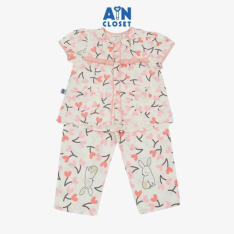 Bộ quần áo Dài tay ngắn bé gái họa tiết Thỏ Trái Tim Hồng cotton - AICDBGY3G8WX - AIN Closet