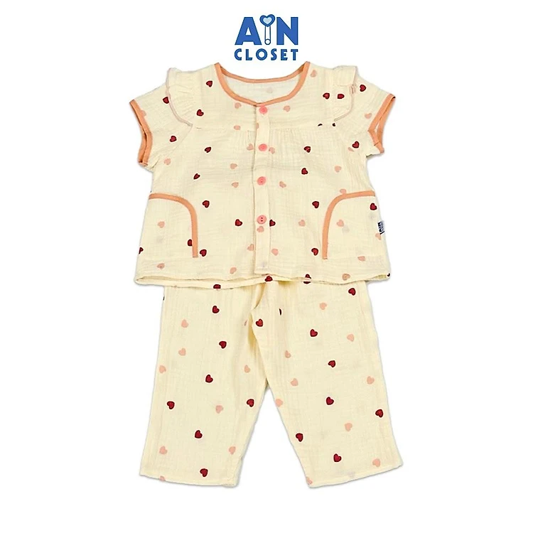 Bộ quần áo Dài tay ngắn bé gái họa tiết Tim Hồng Phai Xô muslin - XHADBGVSNYGA - AIN Closet