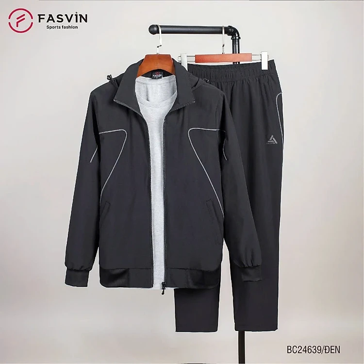Bộ quần áo gió nam 2 lớp có mũ FASVIN BC24639.HN vải thể thao cao cấp lót vải thun hàng chính hãng