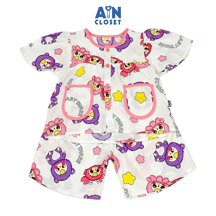 Bộ quần áo Lửng bé gái hoạ tiết Baby Three Tím Lanh lụa - AICDBG3RTAAD - AIN Closet