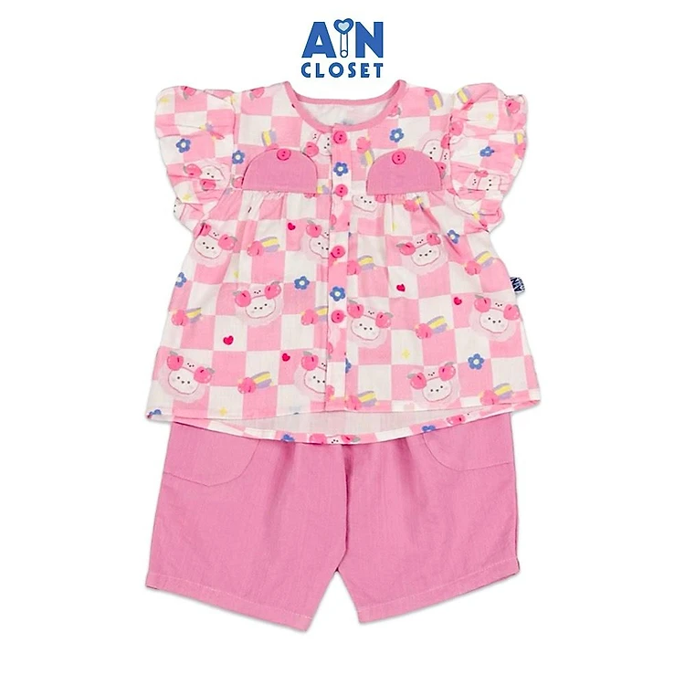 Bộ quần áo Lửng bé gái họa tiết Caro Gấu Đào Hồng cotton - AICDBGVAUA1T - AIN Closet