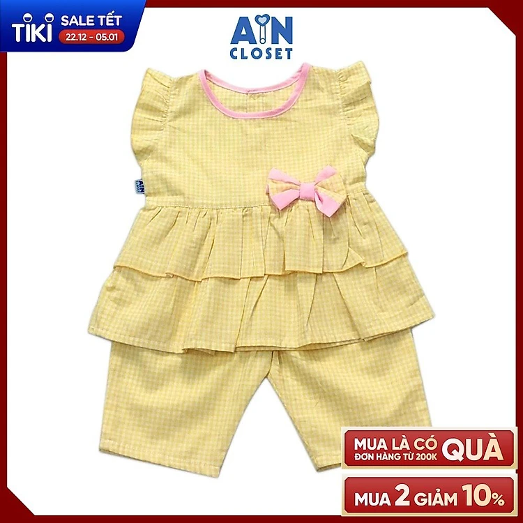 Bộ quần áo lửng bé gái họa tiết Caro vàng nơ cotton - AICDBGSPYSHH - AIN Closet