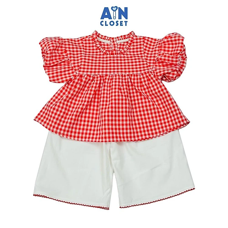 Bộ quần áo Lửng bé gái hoạ tiết Caro Viền Đỏ Cotton - AICDBGELFKH4 - AIN Closet
