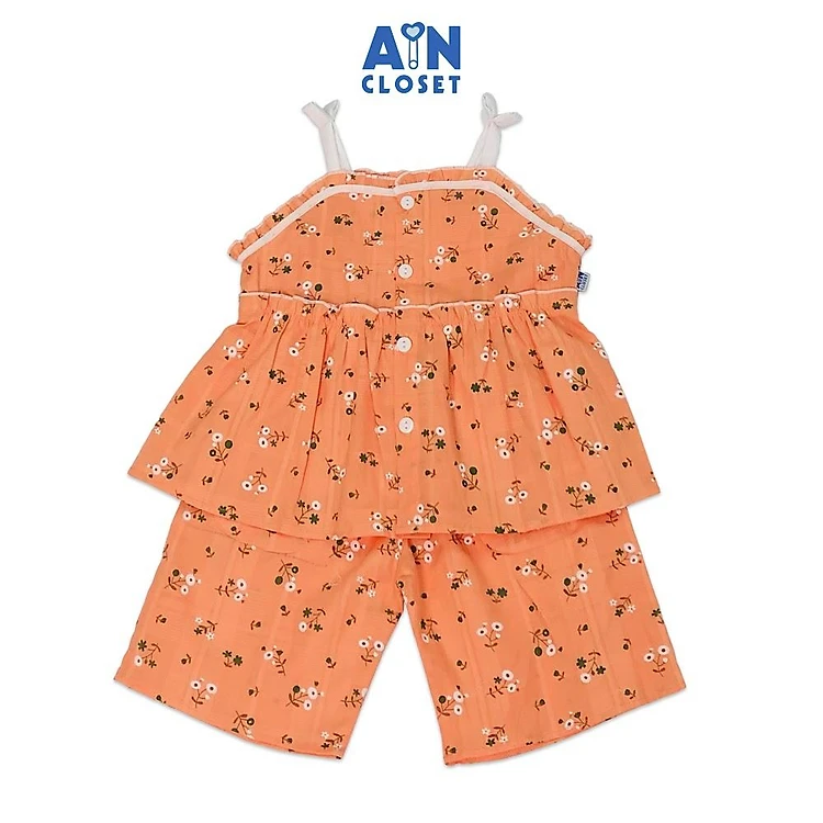 Bộ quần áo lửng bé gái họa tiết dây Hoa Mắt huyền trắng nền cam cotton boi dệt - AICDBGPNMSIW - AIN Closet