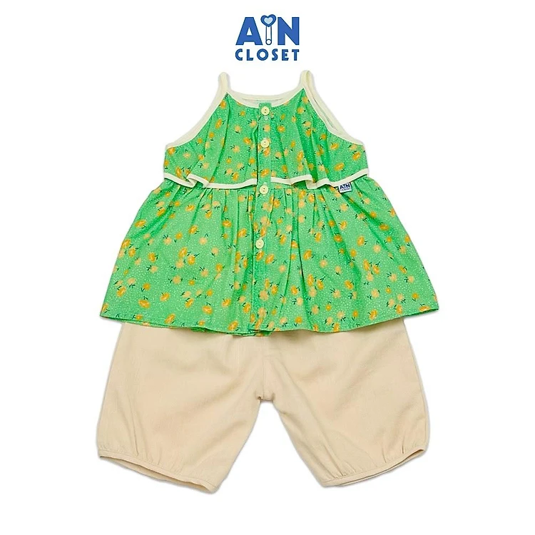 Bộ quần áo Lửng bé gái hoạ tiết Dây Nhí Xanh Cotton - AICDBGNQBVNF - AIN Closet