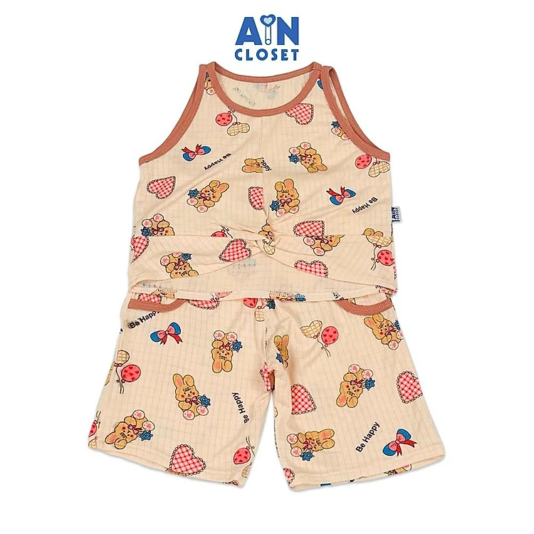 Bộ quần áo Lửng bé gái họa tiết Gấu Nâu thun cotton - AICDBGSAY8L1 - AIN Closet