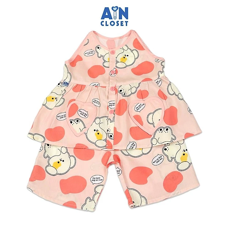 Bộ quần áo Lửng bé gái hoạ tiết Gấu Trắng nền Hồng Lanh lụa - AICDBGQWI68J - AIN Closet