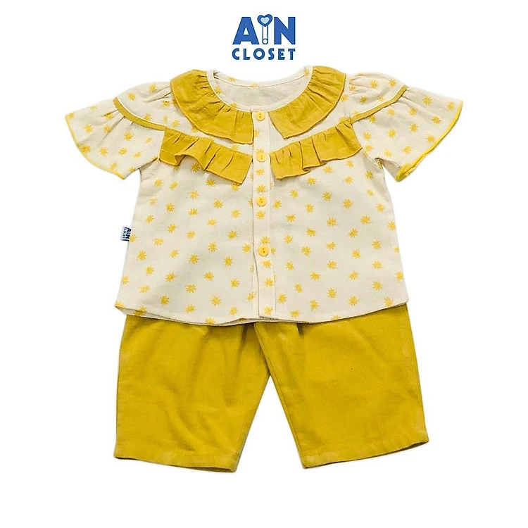 Bộ quần áo lửng bé gái họa tiết Hoa điệp vàng cara - AICDBGZPGT8L - AIN Closet