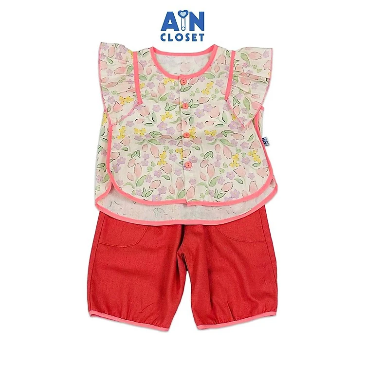 Bộ quần áo Lửng bé gái họa tiết Hoa Nhí Quần Hồng Cotton - AICDBGBD43AT - AIN Closet