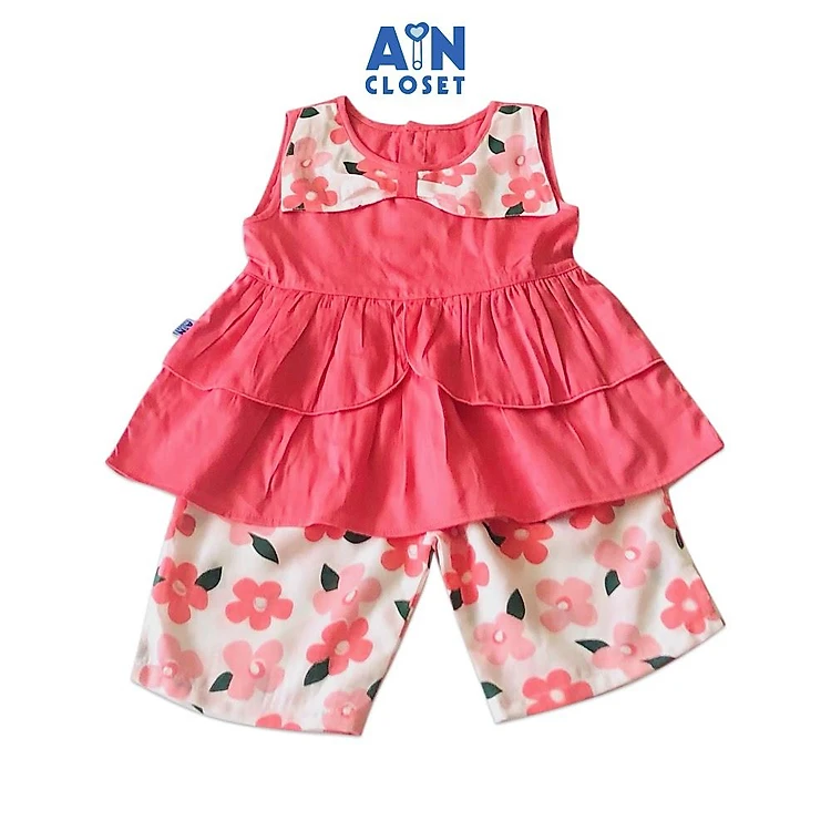 Bộ quần áo lững bé gái họa tiết Hồng quần hoa 2 tầng - AICDBG8KOU9Q - AIN Closet