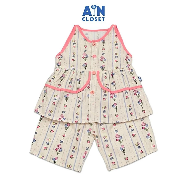 Bộ quần áo Lửng bé gái hoạ tiết Kẻ Hoa Hồng Cotton - AICDBG2ABJFD - AIN Closet