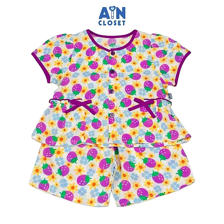 Bộ quần áo Lửng bé gái hoạ tiết Quả Dâu Tím Lanh lụa - AICDBGJBRDKS - AIN Closet