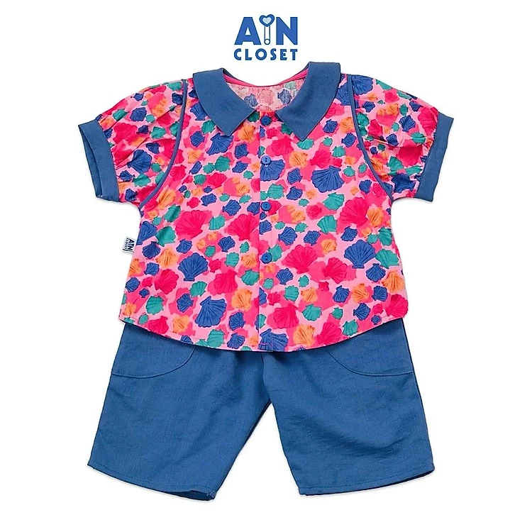 Bộ quần áo lửng bé gái họa tiết Sò Điệp quần xanh cotton - AICDBGX0XWNG - AIN Closet