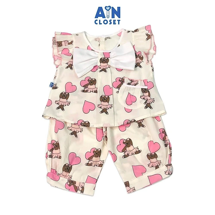 Bộ quần áo lửng bé gái họa tiết Teddy tim nâu cotton - AICDBG6DYTTC - AIN Closet