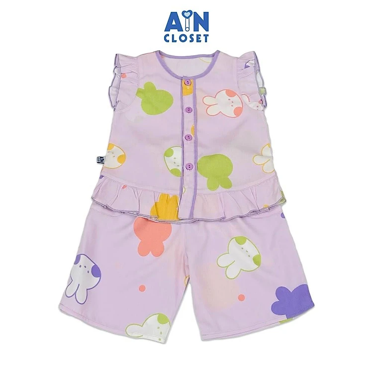 Bộ quần áo Lửng bé gái hoạ tiết Thỏ Tím Lanh lụa - AICDBG8KO5VN - AIN Closet