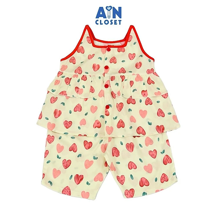 Bộ quần áo Lửng bé gái họa tiết Tim Đỏ Lanh lụa. - AICDBGGMNAAG - AIN Closet