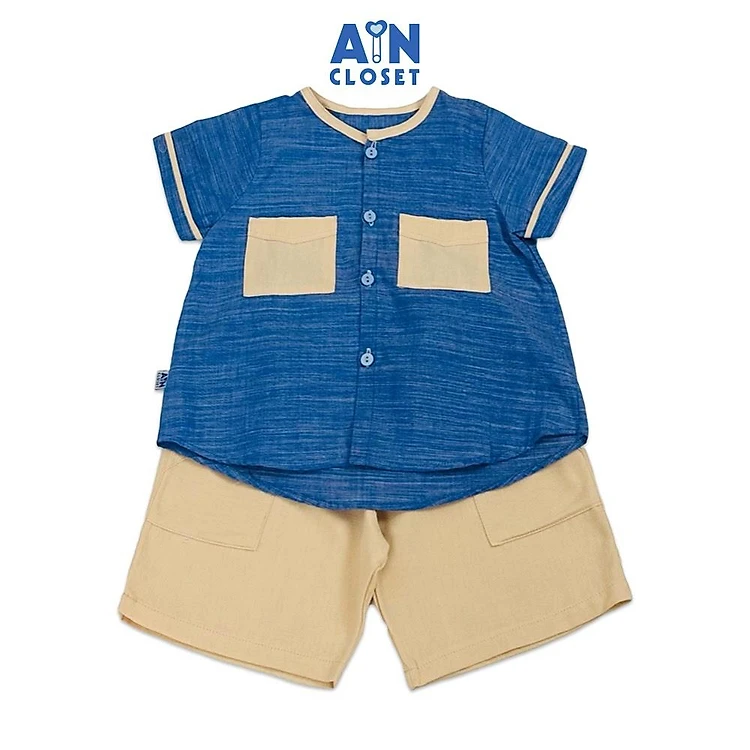Bộ quần áo Lửng bé trai họa tiết Kẻ Xanh Be cotton - AICDBTTXUYI4 - AIN Closet