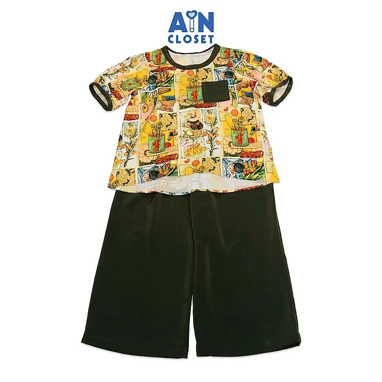 Bộ quần áo lửng cho mẹ họa tiết Xanh rêu lụa - AICDMEQB5DGH - AIN Closet