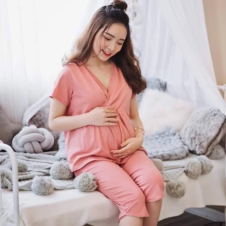 - Bộ bầu bao gồm 1 áo cộc tay và 1 quần lửng với thiết kế rộng rãi tạo sự thoải mái cho mẹ trong giai đoạn kiêng cữ.