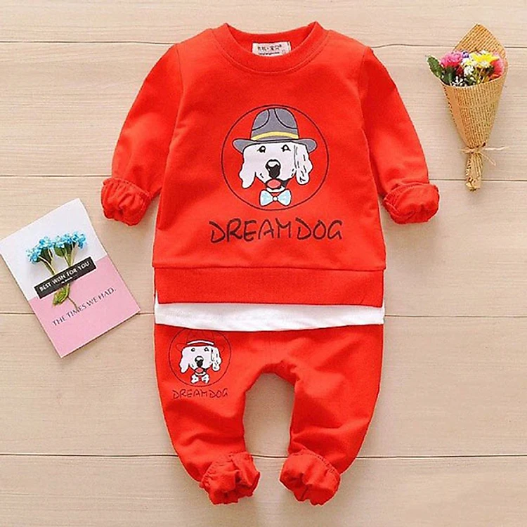 Bộ Quần Áo Mẫu Cún Đội Mũ Cho Bé - Chất Da Cá