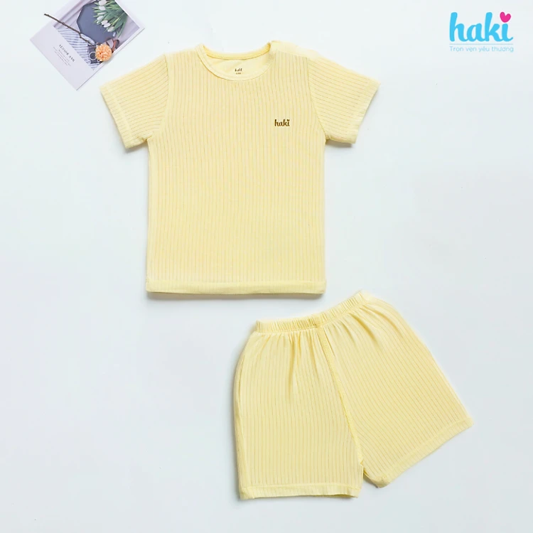 Bộ quần áo mùa hè cộc tay cài vai vải Modal cao cấp siêu mềm mịn cho bé, set sơ sinh cho bé từ 3 tháng - 3 tuổi chất liệu gỗ sồi xuất khẩu HAKI BM015 (4-15kg), quần áo hè cho bé trai bé gái