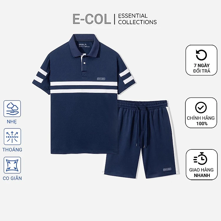 Bộ quần áo nam có cổ ngắn tay phối màu cao cấp DAVUBA