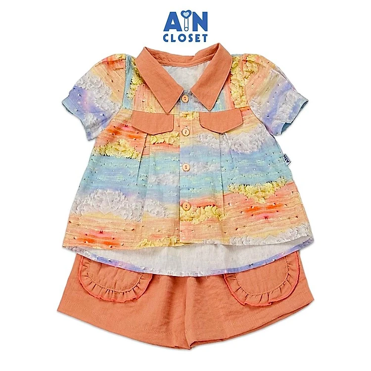 Bộ quần áo ngắn bé cái họa tiết Mây Cam cotton - AICDBGFTGR2F - AIN Closet