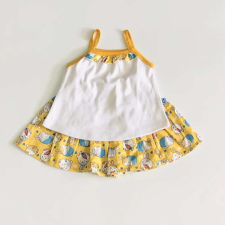 Bộ quần áo ngắn bé gái Áo dây trắng - Quần váy họa tiết thỏ vàng - AICDBGBGVA2N - AIN Closet