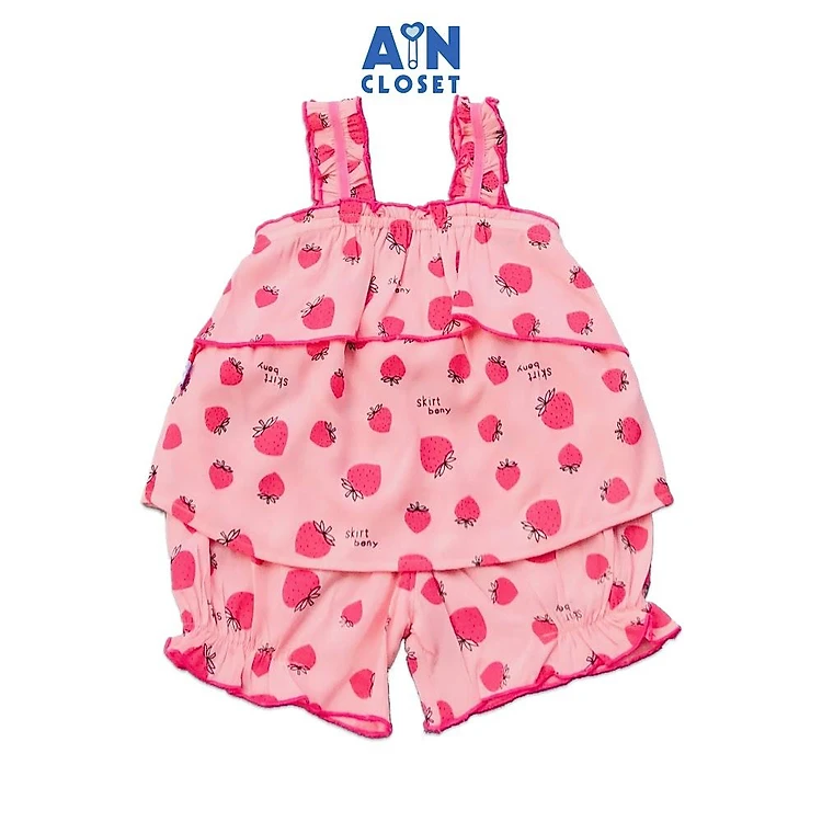 Bộ quần áo ngắn bé gái dây họa tiết Dâu hồng - AICDBGSNZQG0 - AIN Closet