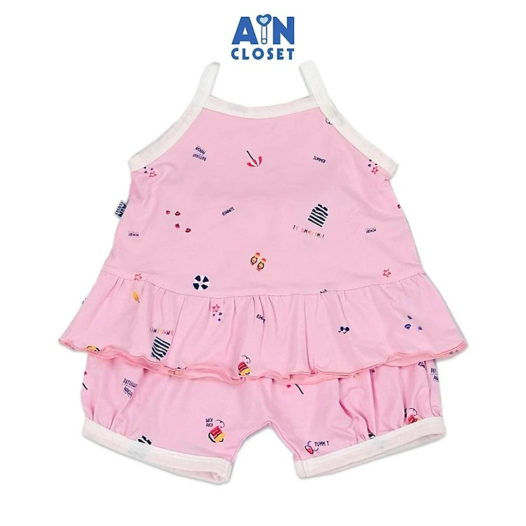 Bộ quần áo Ngắn bé gái họa tiết Bãi Biển Hồng thun cotton - AICDBGGWQCZA - AIN Closet