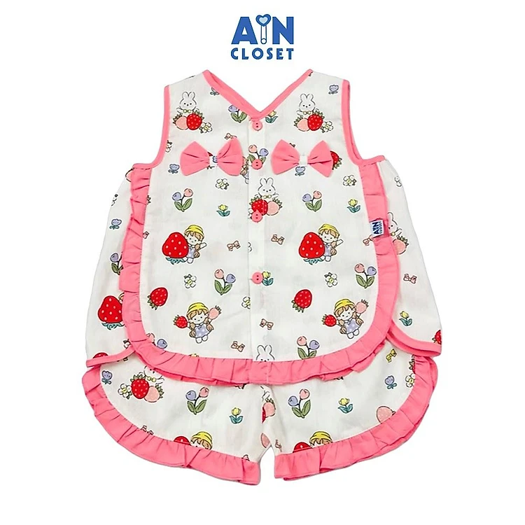 Bộ quần áo Ngắn bé gái hoạ tiết Bé Dâu Đỏ Cotton - AICDBGIUOBDS - AIN Closet