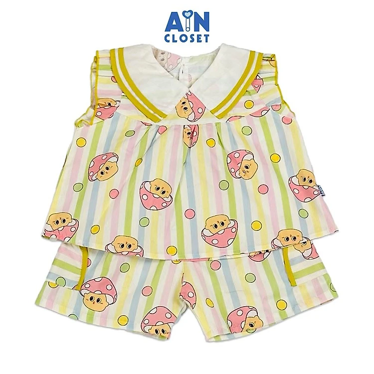 Bộ quần áo Ngắn bé gái họa tiết Bé Nấm Hồng Cotton - AICDBG7K67BV - AIN Closet