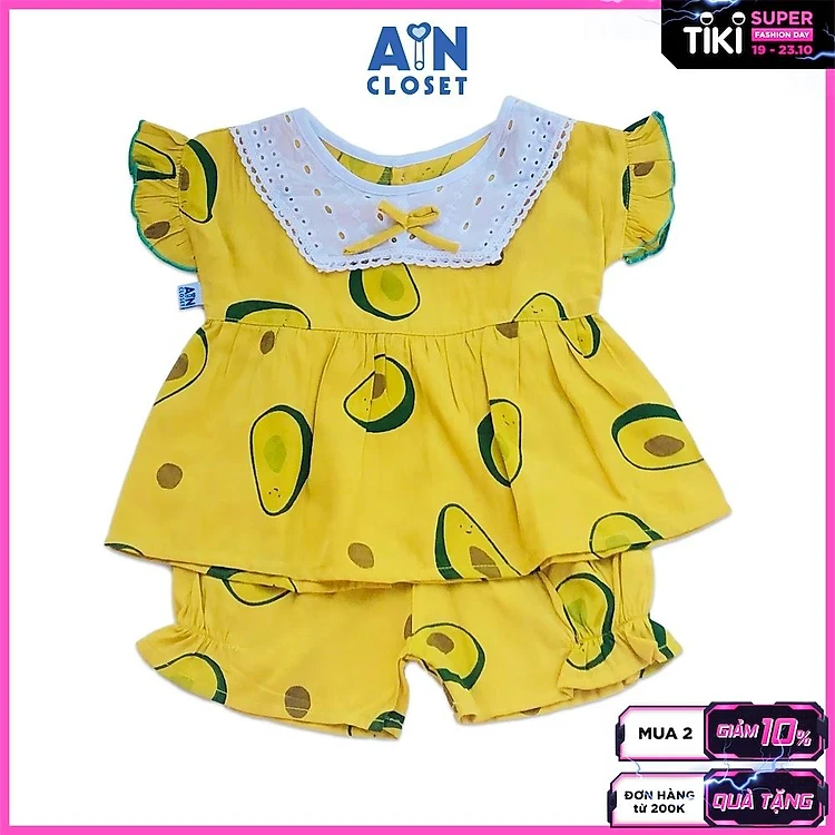 Bộ quần áo ngắn Bé gái họa tiết Bơ vàng - AICDBGSF8LF4 - AIN Closet