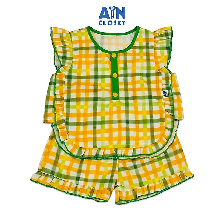 Bộ quần áo Ngắn bé gái họa tiết Caro Madras Vàng Xanh cotton - AICDBGHID1HP - AIN Closet