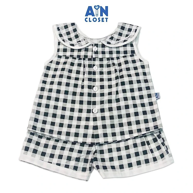 Bộ quần áo ngắn bé gái họa tiết Caro trắng đen cotton - AICDBGSCKOIY - AIN Closet