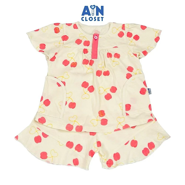 Bộ quần áo Ngắn bé gái họa tiết Cherry Đào Hồng thun cotton - AICDBGMTJJ6Y - AIN Closet